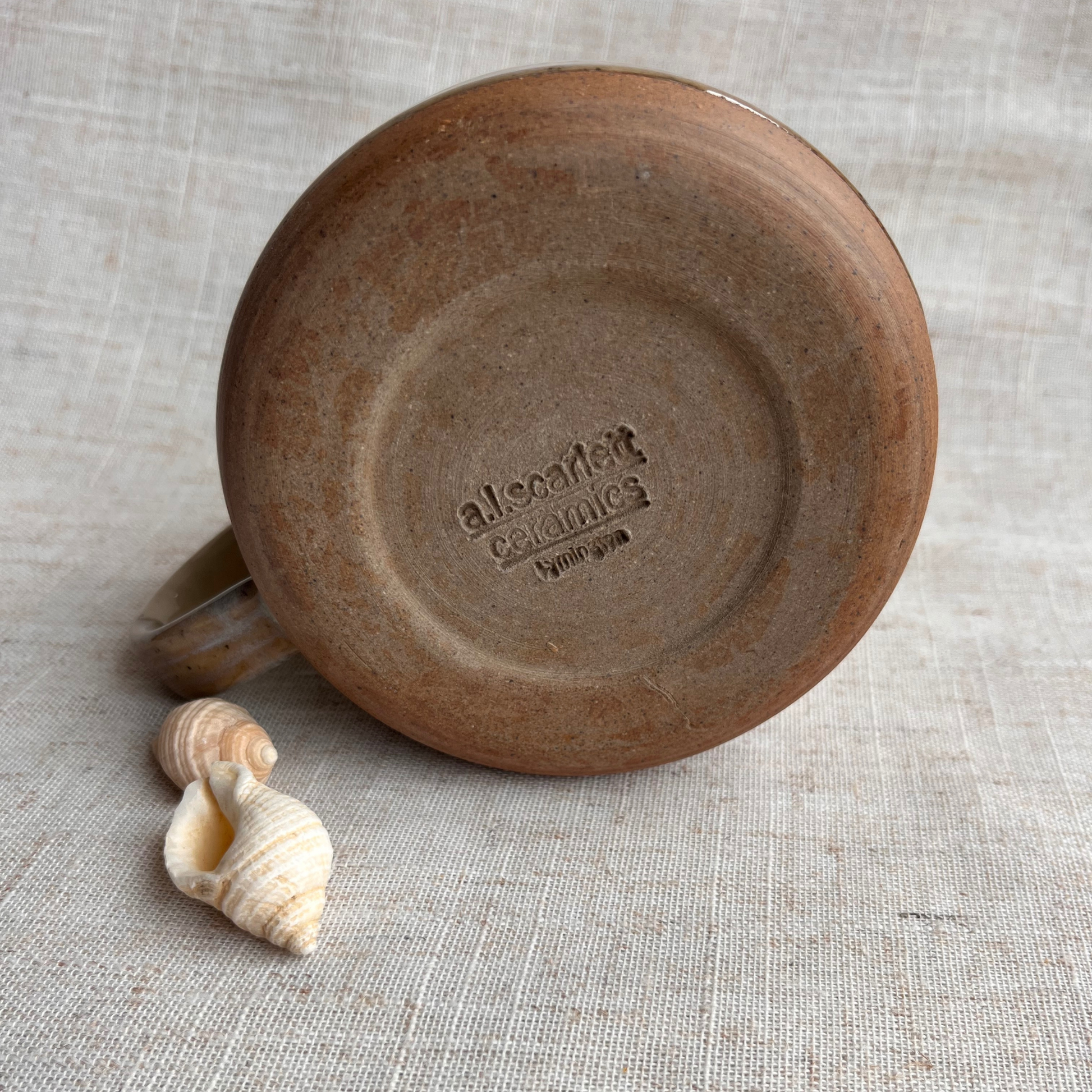 Due to the handmade nature of wheel‑thrown stoneware, slight differences in size, glaze markings, and colour tones are to be expected. Your mug may vary subtly from the photographs shown, making this mug a beautiful addition to any coastal home décor or pottery collection.