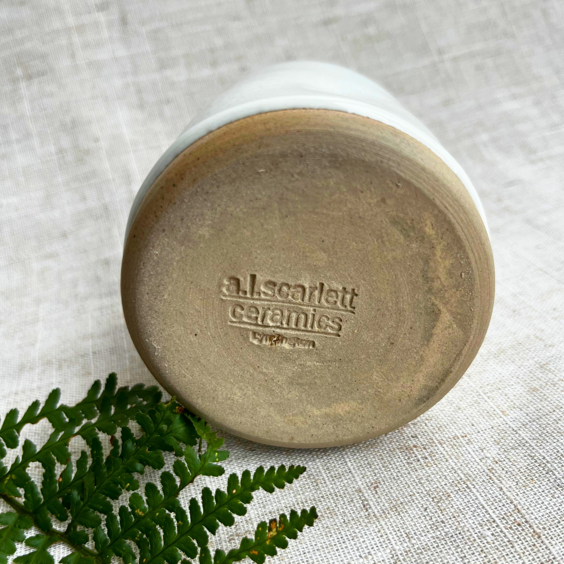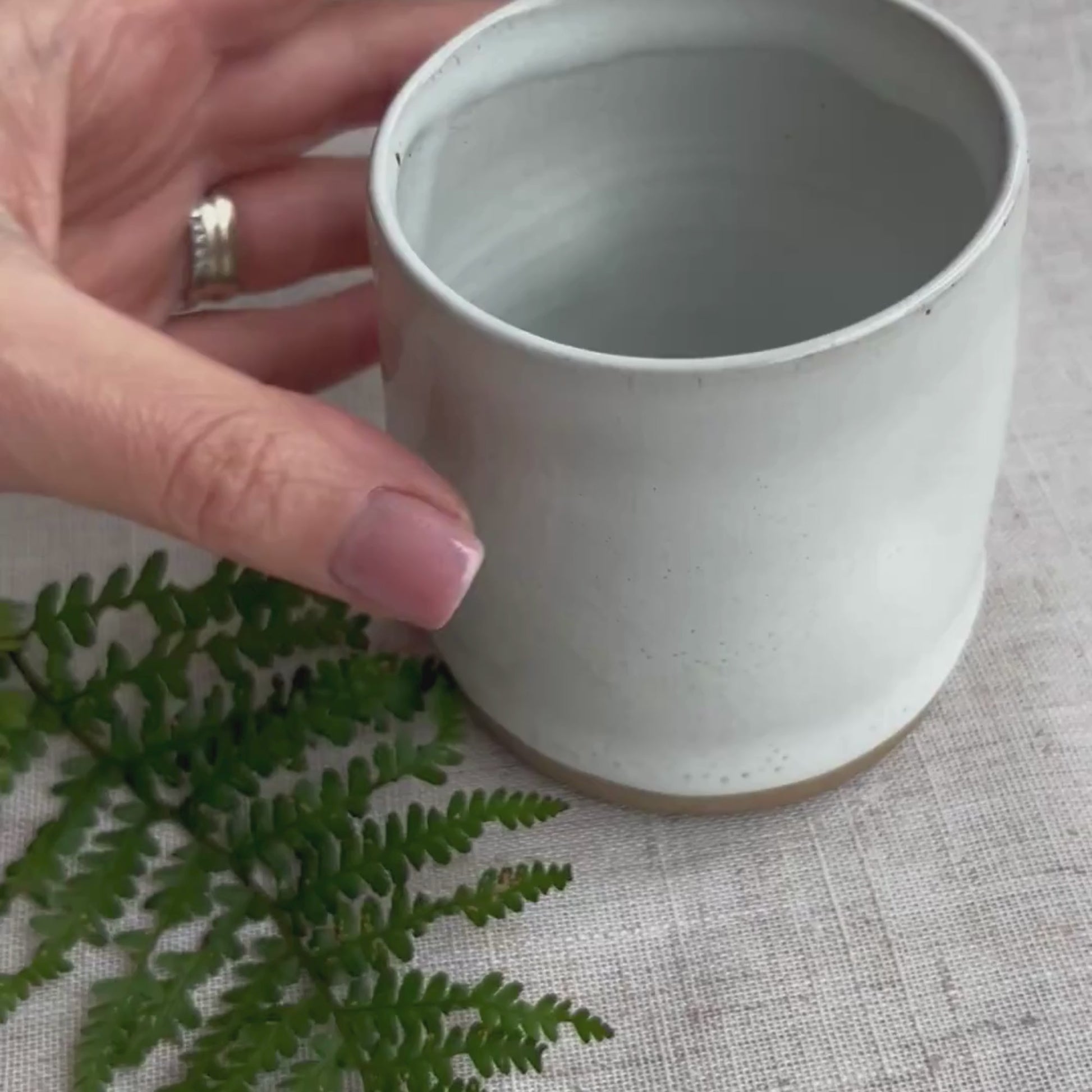 The dimples offer a natural, comfortable hold, grounding you in the moment as you sip your favourite drink. Each ceramic cup is individually wheel-thrown by Adam in our garden pottery shed. Due to the handmade nature of the process, slight variations in size, glaze markings, and colour tones are to be expected. Your cup may differ subtly from the photographs shown, reflecting its unique character.